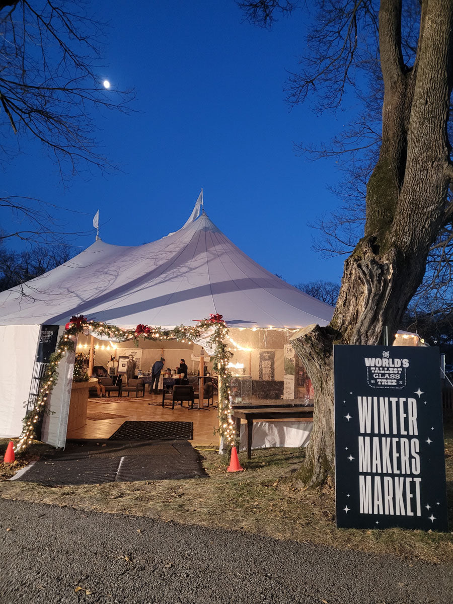 Witness the building of the World’s Tallest Glass Tree, live glassblowing, steel sculpting and woodworking. Alongside a Winter Market comprised of local artisans, craftspeople, and custom handmade glassware made by Mack.